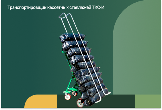 Для эффективной работы рекомендуется использовать транспортировщик ТКС-И, который позволяет перевозить стеллаж СКУ (фронтально/боком) с полной загрузкой субстратными блоками (до 11 блоков).